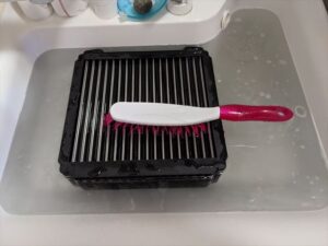 こちらは、台所洗剤を使用して水でじゃぶじゃぶです。付属のブラシが毛が長くいい感じでした。